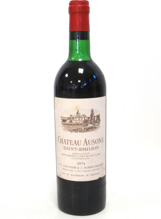 1 Blle CH. AUSONE St Emilion 1er GCC 1974 Et. un peu tachée et très légèrement effrangée. N : limite haut épaule.