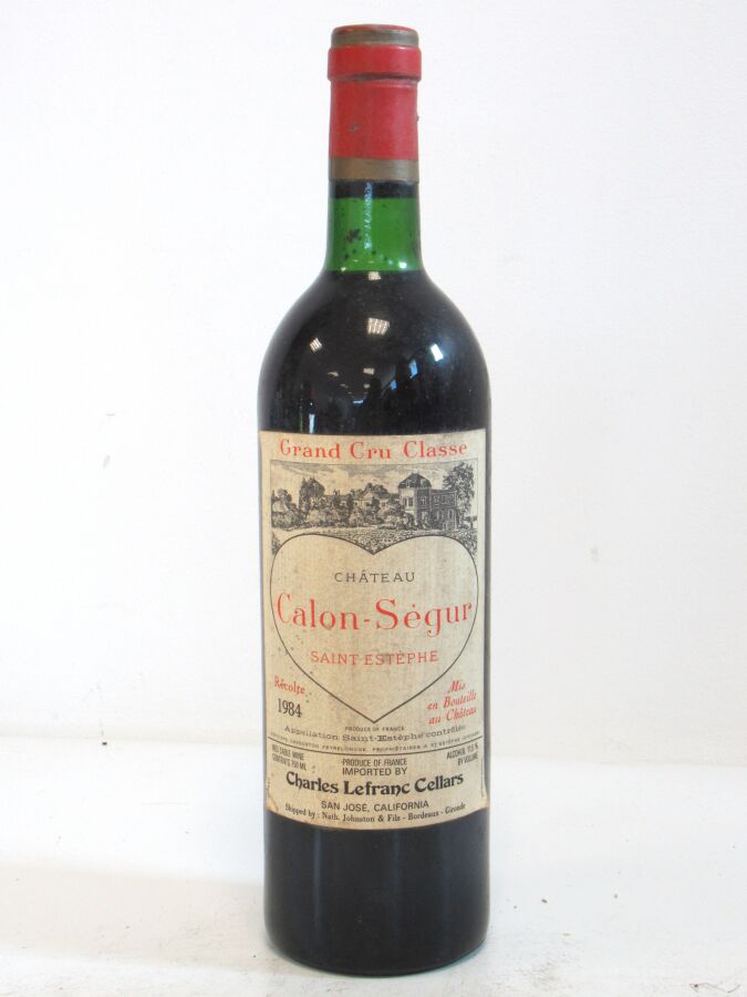1 Blle CH. CALON SÉGUR St Estèphe GCC 1984 Passe d'importation U.S. Et. tachée. N : limite haut épaule.