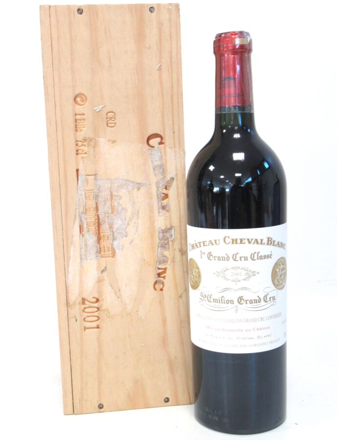 1 Blle CH. CHEVAL BLANC St Emilion 1er GCC 2001 Et. impeccable. N : bas goulot. CBO.