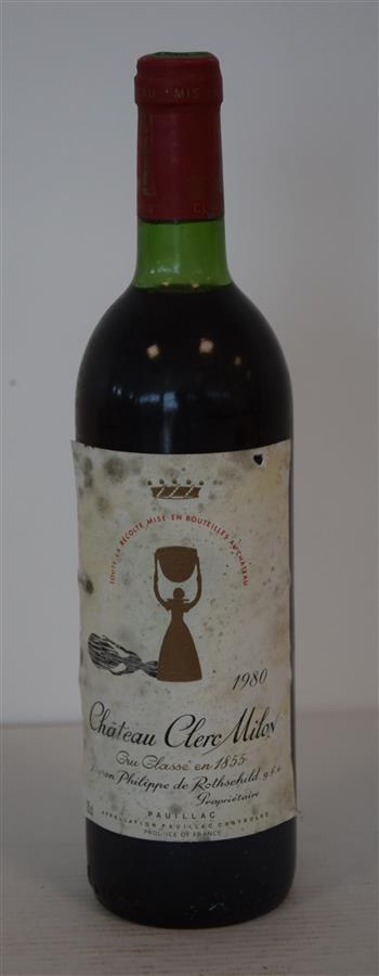 1 Blle CH. CLERC MILON Pauillac CC 1980 Et. un peu fanée et un peu tachée. N : limite haut épaule.