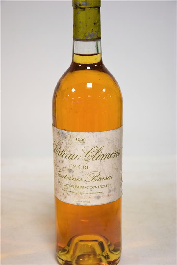 1 Blle CH. CLIMENS Barsac 1er CC 1990 Et. tachée, fanée et un peu effrangée. N : mi goulot.