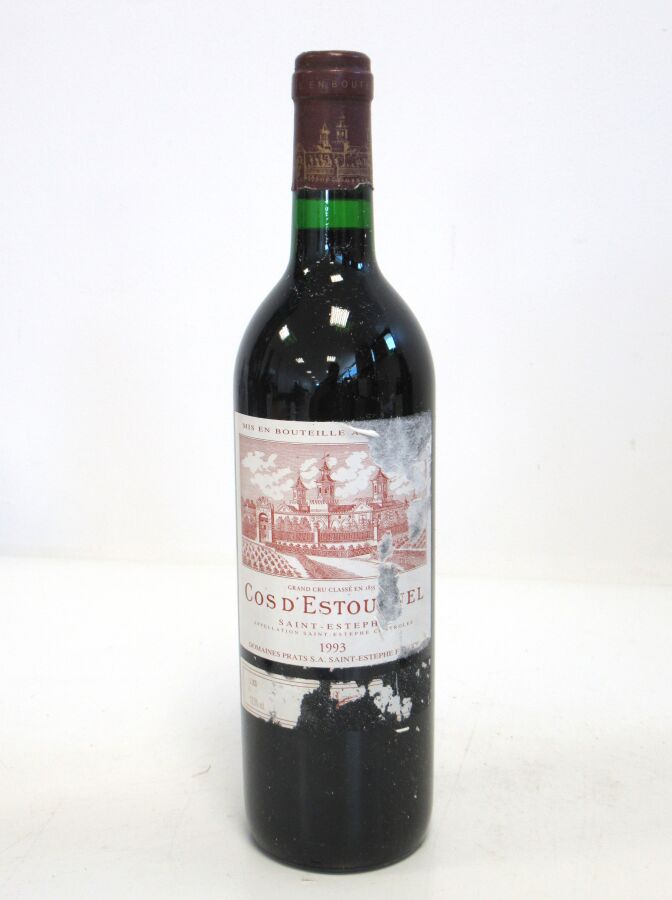 1 Blle CH. COS D'ESTOURNEL St Estèphe GCC 1993 Et. déchirée (usée). N : mi goulot.