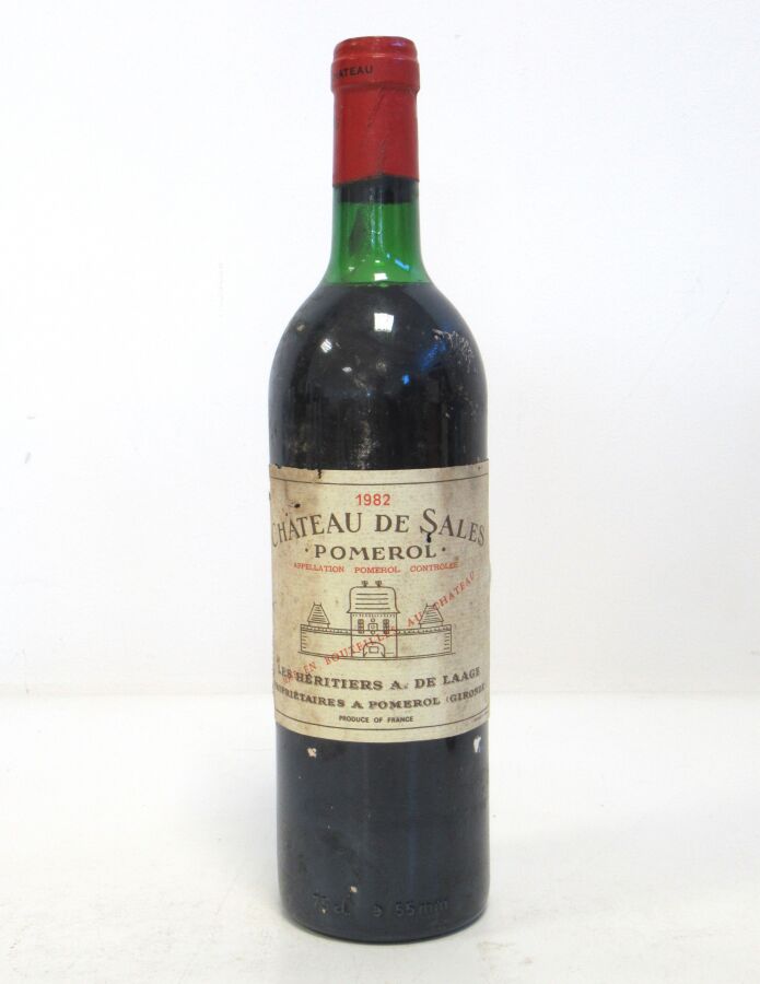 1 Blle CH. DE SALES Pomerol 1982 Et. fanée et tachée (un peu effrangée). N : tout en haut épaule.