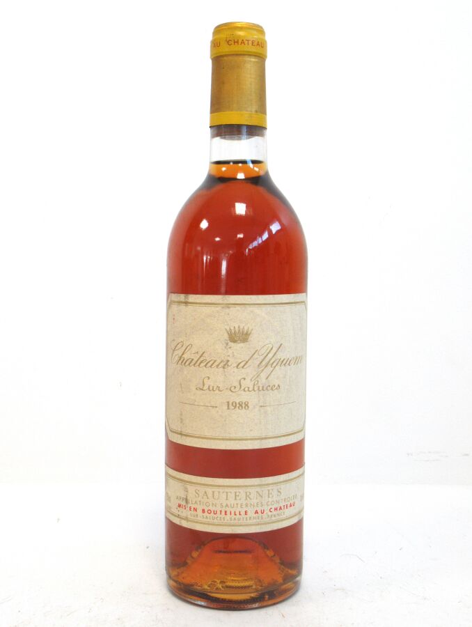 1 Blle CH. D'YQUEM 1er Cru Sup Sauternes 1988 Et. fanée et tachée. N : bas goulot.