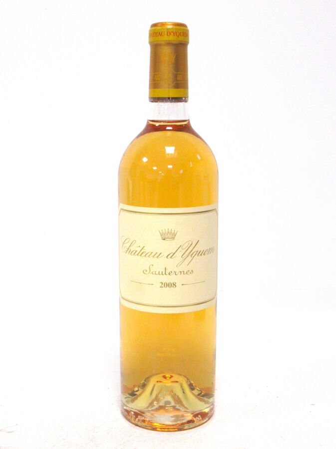 1 Blle CH. D'YQUEM 1er Cru Sup. Sauternes 2008 Et. impeccable. N : bas goulot.