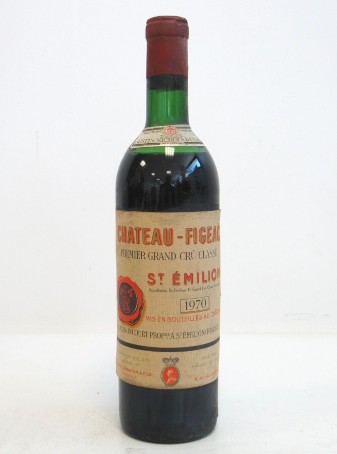 1 Blle CH. FIGEAC St Emilion 1er GCC 1970 Passe d'importation U.S. Et. fanée et tachée. N : mi épaule.