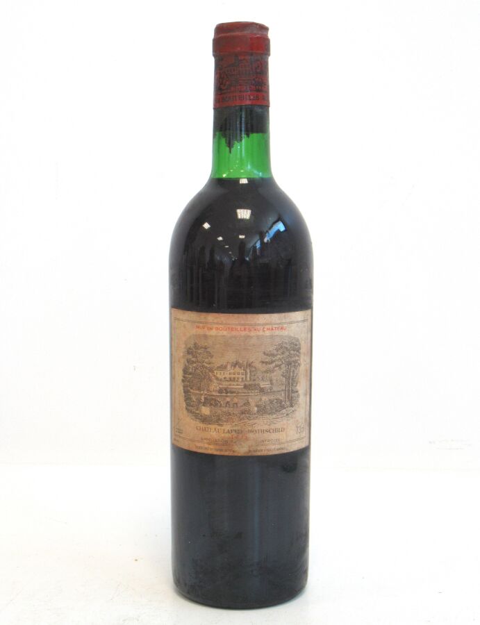1 Blle CH. LAFITE ROTHSCHILD Pauillac 1er GCC 1973 Et. tachée et usée. N : bas goulot/limite haut épaule.