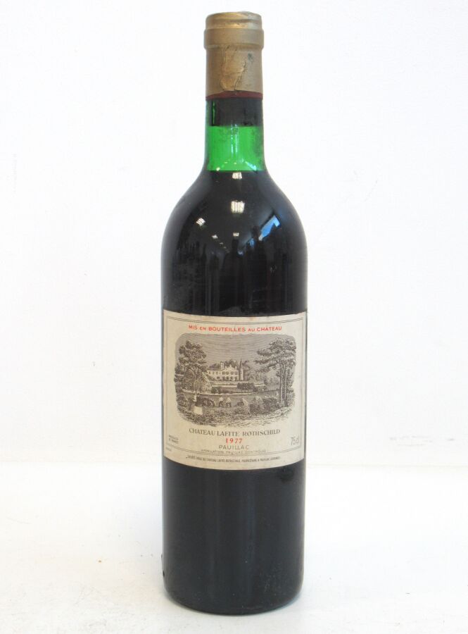 1 Blle CH. LAFITE ROTHSCHILD Pauillac 1er GCC 1977 Et. un peu tachée. N : bas goulot/limite haut épaule.