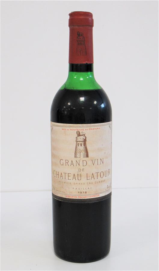 1 Blle CH. LATOUR Pauillac 1er GCC 1976 Et. un peu fanée et tachée. Bouchon descendu. N : ht/mi épaule.