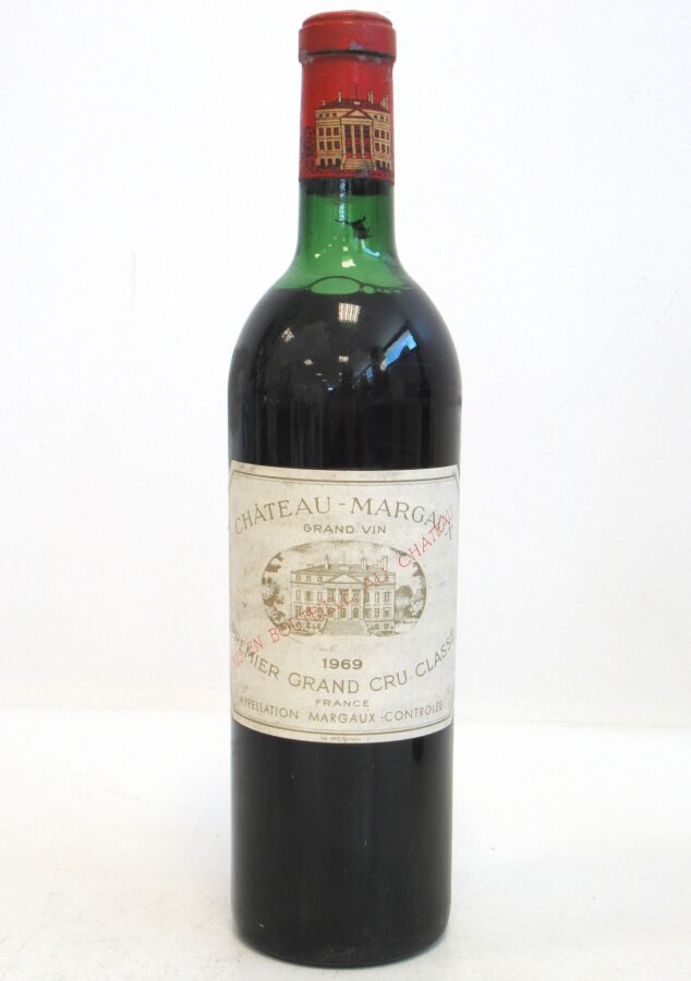 1 Blle CH. MARGAUX Margaux 1er GCC 1969 Et. un peu fanée et tachée. N : ht/mi épaule (+).