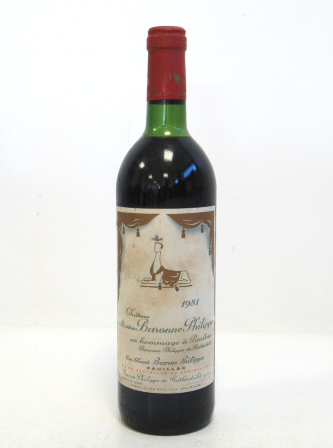 1 Blle CH. MOUTON BARONNE PHILIPPE Pauillac CC 1981 Et. fanée et tachée. N : tout en haut épaule.