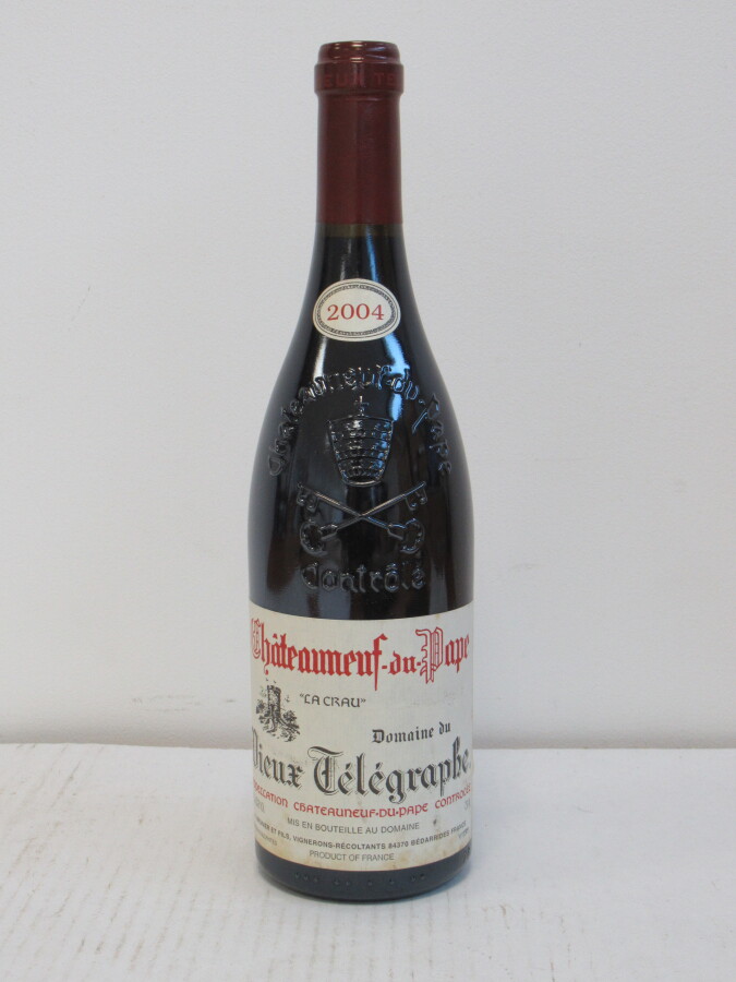 1 Blle CHATEAUNEUF DU PAPE mise Domaine du Vieux Télégraphe 2004 Et. tachée. N : 0,5 cm.