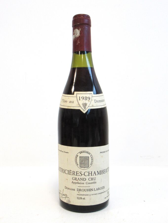 1 Blle LATRICIÈRES CHAMBERTIN GC mise Dom. Drouhin-Laroze 1989 Et. un peu tachée. N : 2,5 cm.