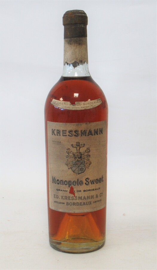 1 Blle MONOPOLE SWEET mise Kressmann nég. Mill. ? Et. fanée et tachée (1 déchirure). N : limite haut épaule.