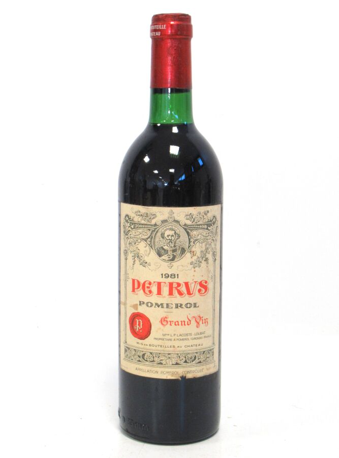 1 Blle PÉTRUS Pomerol 1981 Et. un peu tachée (1 petit accroc). N : bas goulot/limite haut épaule.