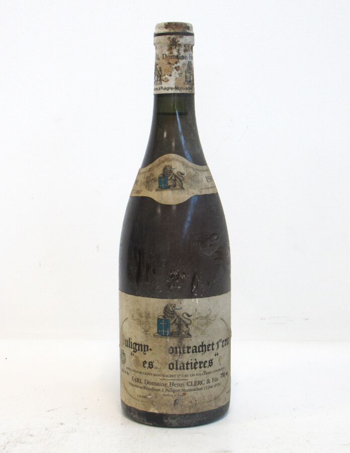 1 Blle PULIGNY MONTRACHET 1er Cru Les Folatières mise Dom. H. Clerc & Fils. 1990 Et. fanée, usée et tachée. N : 2 cm.