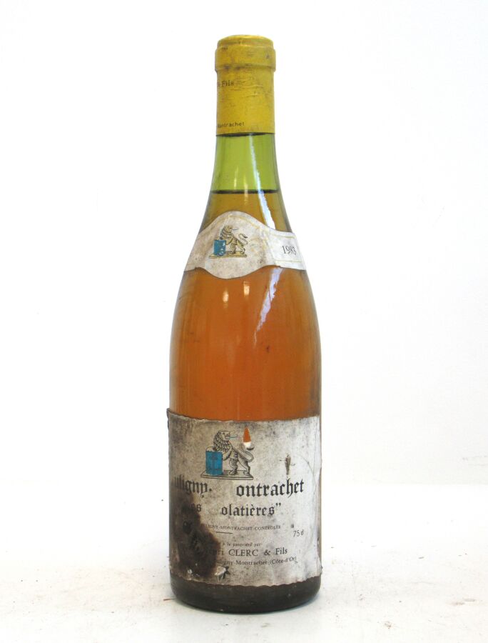 1 Blle PULIGNY MONTRACHET 1er Cru Les Folatières mise Dom. H. Clerc & Fils. 1983 Et. tachée. N : 3 cm.