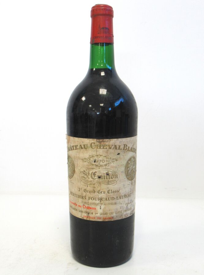 1 Mag CH. CHEVAL BLANC St Emilion 1er GCC 1970 Et. fanée et tachée (quelques petits accrocs). N : bas goulot.