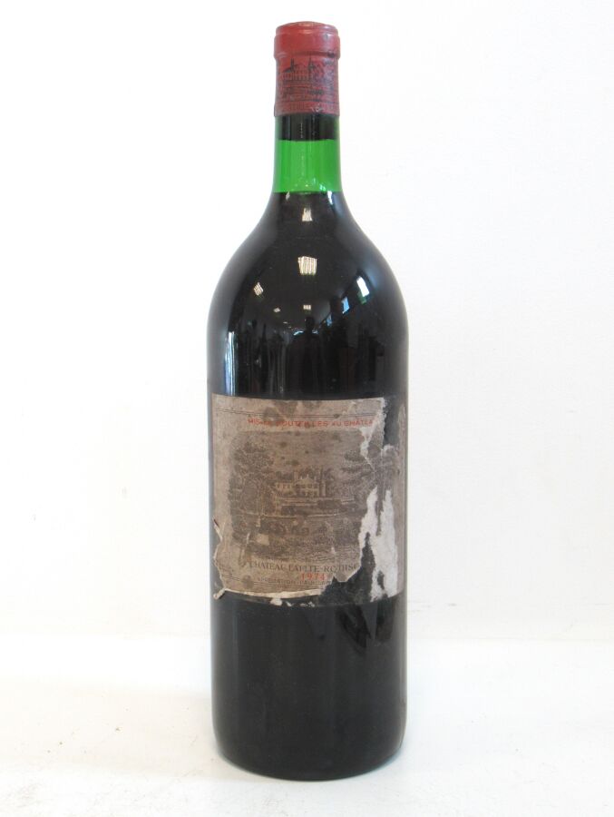 1 Mag CH. LAFITE ROTHSCHILD Pauillac 1er GCC 1974 Et. fanée, tachée et déchirée (usée). N : bas goulot.