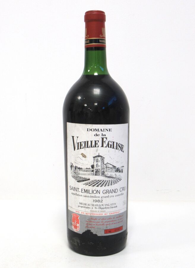 1 Mag DOMAINE DE LA VIEILLE EGLISE St Emilion GC 1982 Et. tachée et légèrement déchirée. N : bas goulot/limite haut épaule.