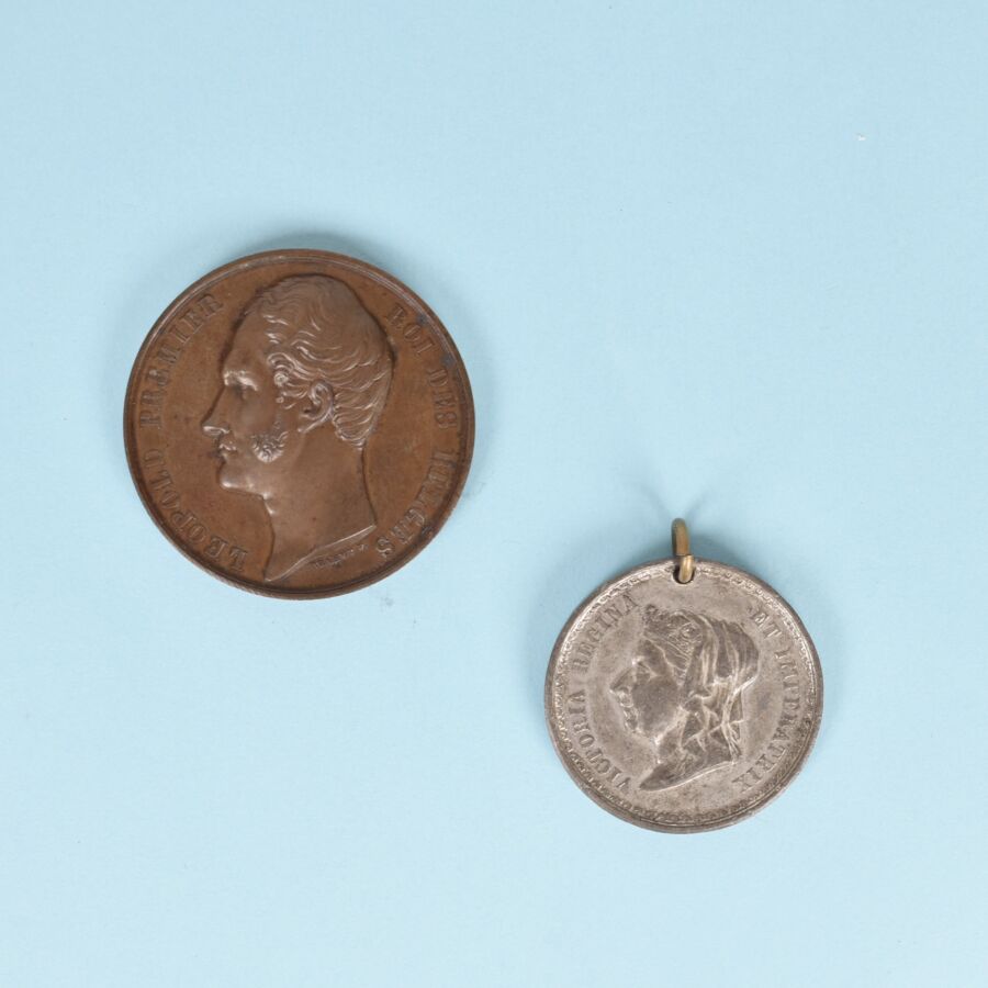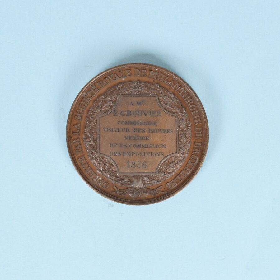 - 1 médaille commémorative Léopold Premier Roi des Belges, offerte par la société royale de Philanthropie de Bruxelles à E.G.Bouvier commissaire visiteur des pauvres, membre de la commission des expositions, 1856.