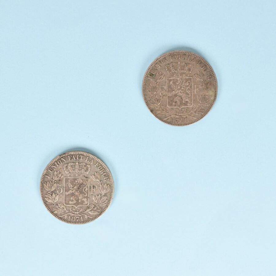 - 1 pièce de 5 francs Belge Léopold Premier Roi des Belges, 1870 , poids : environ 25 g - TTB.