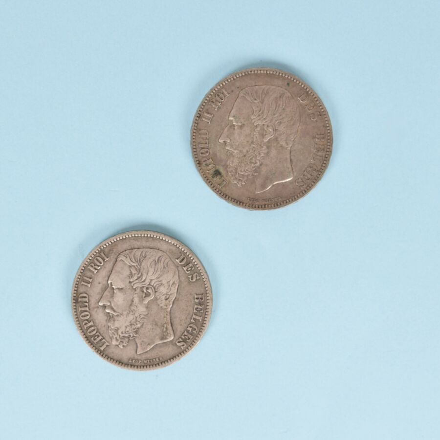 - 1 pièce de 5 francs Belge Léopold Premier Roi des Belges, 1871, poids : environ 25 g - TTB.