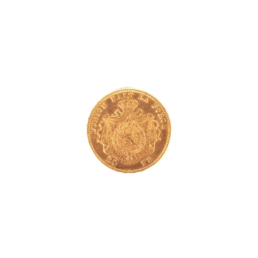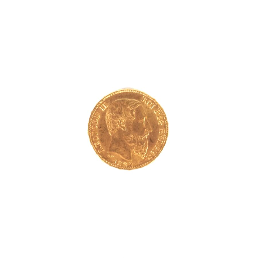 1 x 20 Francs or belge, Léopold II roi des Belges, 1882, Poids brut : 6.4 g environ.