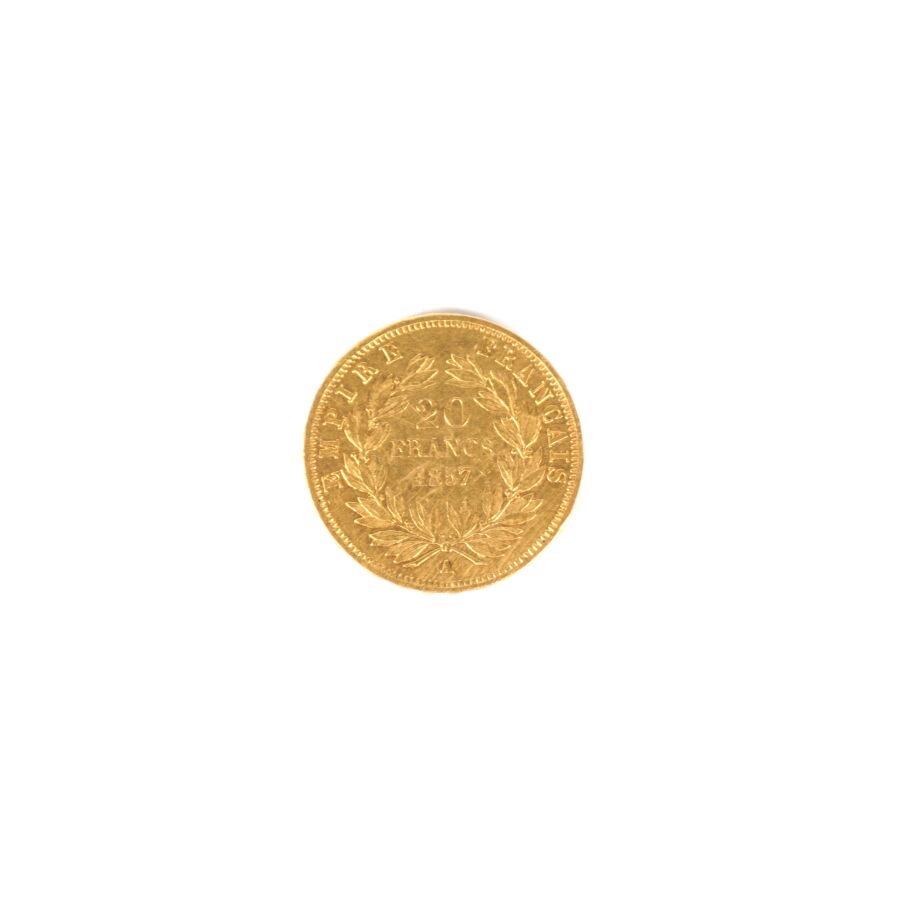 1 x 20 Francs or, Napoléon III "Tête nue" 1857 A, Poids brut : 6.4 g environ.
