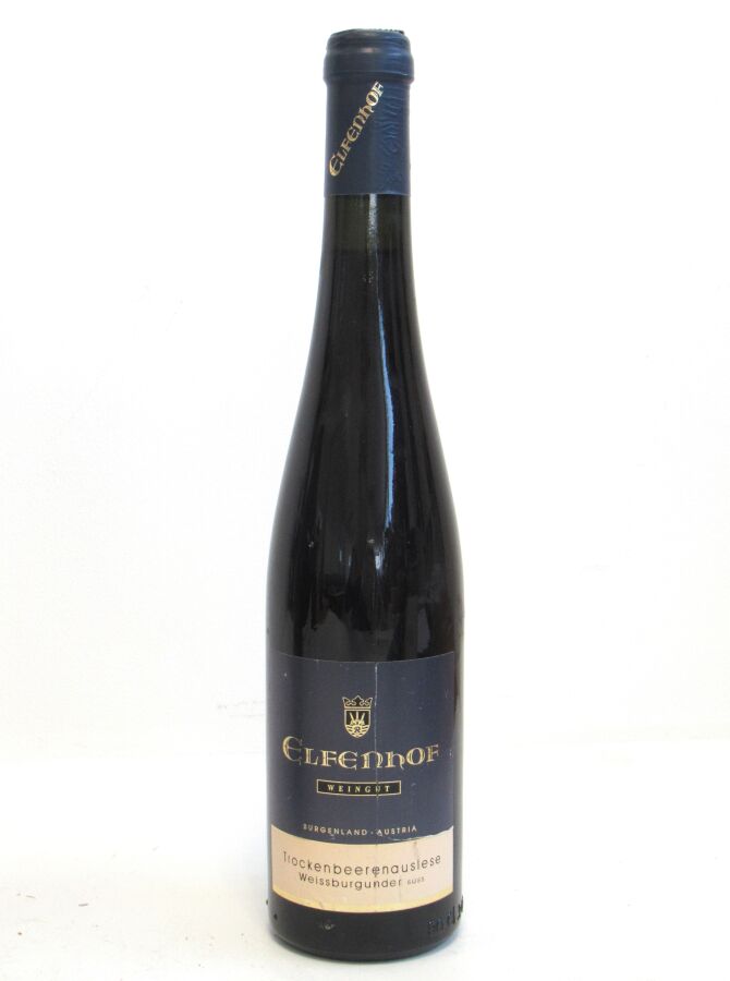 1 x 50 cl CHARDONNAY blanc Trockenbeerenauslese mise Elfenhof 1995 (Autriche). Vin doux. Et. un peu usée. N : 2 cm.