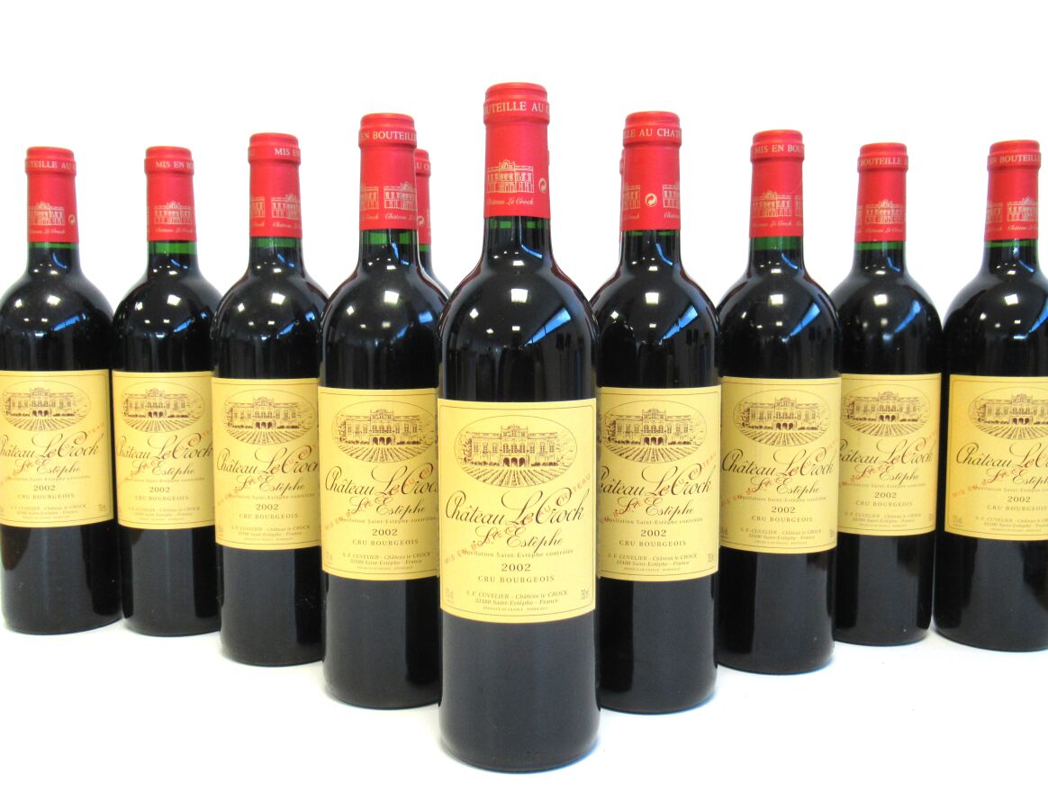 12 Blles CH. LE CROCK St Estèphe CB 2002 Présentation et niveau, impeccables. Carton d'origine.