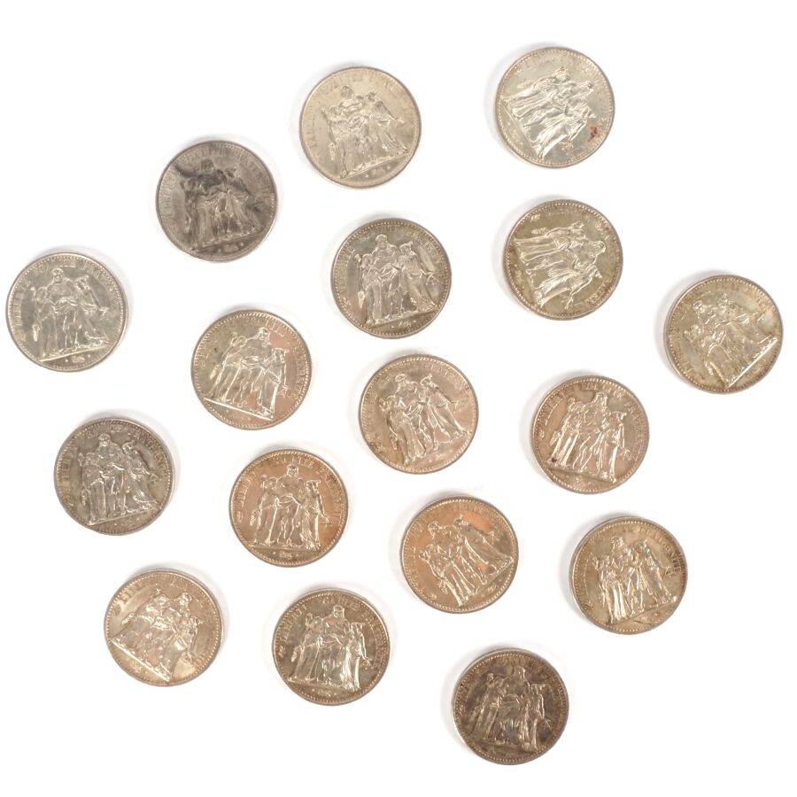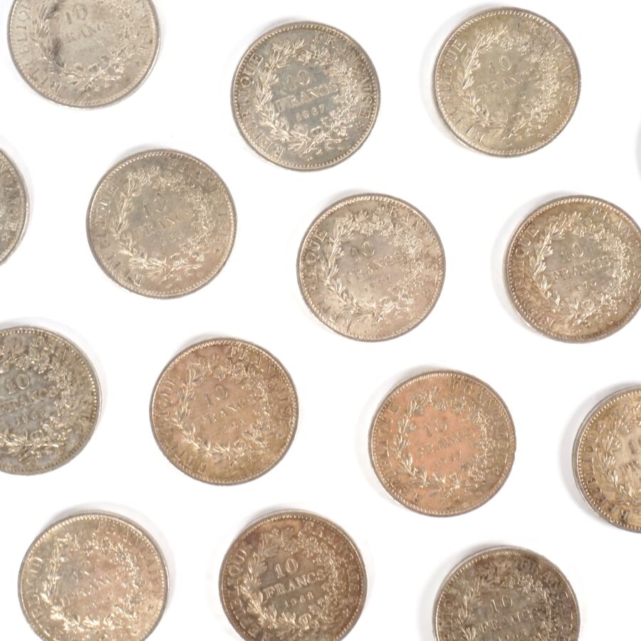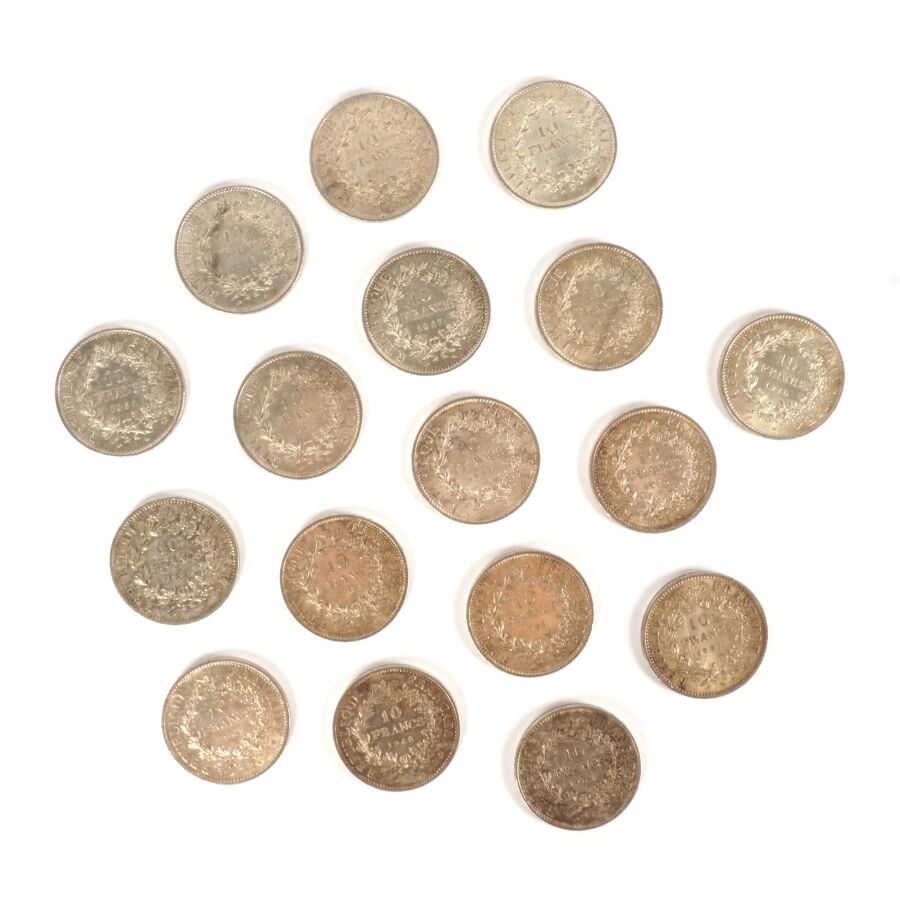 17 x 10 francs argent, Hercule, 4 x 1965, 4 x 1966, 4 x 1967, 1 x 1968 et 4 x 1970, Poids brut : 426 g environ.