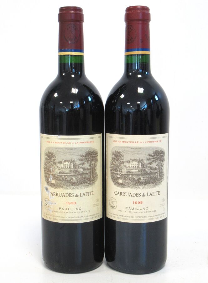 2 Blles CARRUADES DE LAFITE Pauillac : 1 blle de 1998, 1 blle de 1995. Et.: 1 impeccable, 1 un peu usée. N : mi goulot.