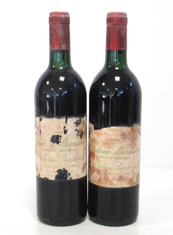 2 Blles CH. BRANAIRE DUCRU St Julien GCC 1986 Et. très usées et tachées (lisibles). N : limite haut épaule.