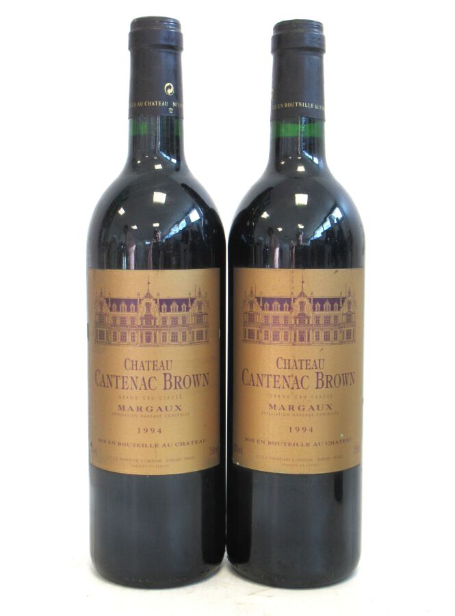 2 Blles CH. CANTENAC BROWN Margaux GCC 1994 Et. un peu fanées. N : mi goulot.