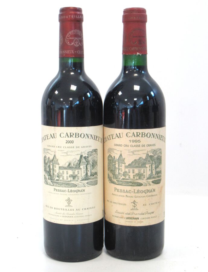 2 Blles CH. CARBONNIEUX Graves GCC : 1 blle de 2000, 1 blle de 1995. Et.: 1 un peu tachée, 1 plus tachée. N : 1 mi goulot, 1 mi-bas goulot.