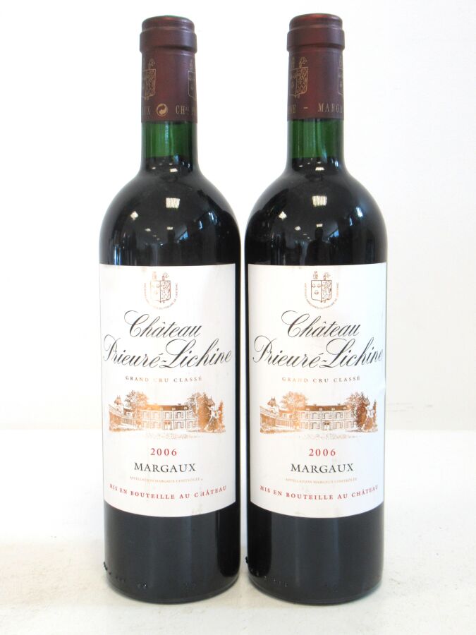2 Blles CH. PRIEURÉ LICHINE Margaux GCC 2006 Et. à peine tachées. N : bas goulot.