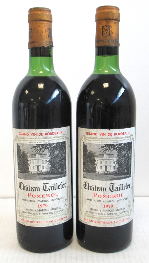 2 Blles CH. TAILLEFER Pomerol 1979 Et. tachées (2 légers accrocs). N : tout en haut épaule.