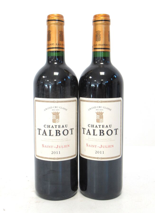 2 Blles CH. TALBOT St Julien GCC 2011 Et. à peine tachées. N : mi goulot.