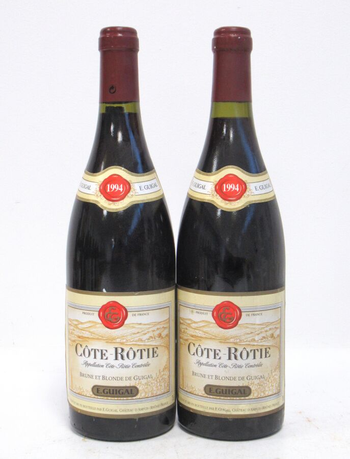 2 Blles CÔTE-RÔTIE Brune et Blonde mise Guigal 1994 Et. tachées. N : 1 cm.
