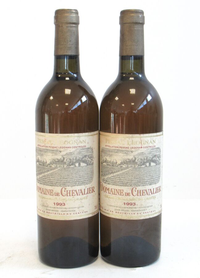 2 Blles DOMAINE DE CHEVALIER Graves GCC blanc 1993 Et. tachées. N : bas goulot.