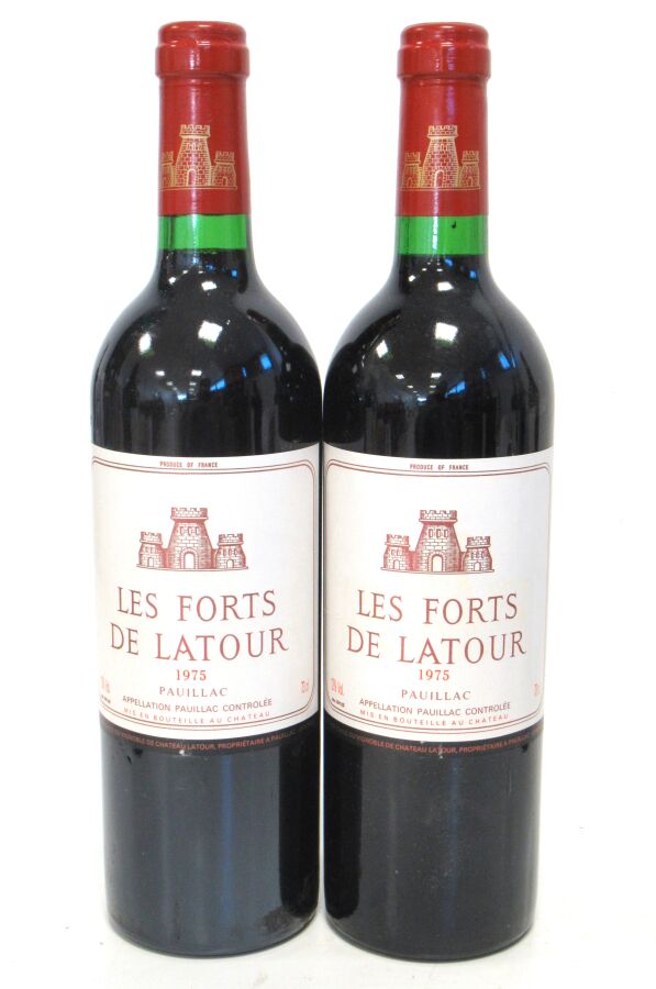 2 Blles LES FORTS DE LATOUR Pauillac 1975 Et. excellentes. N : mi/bas goulot.