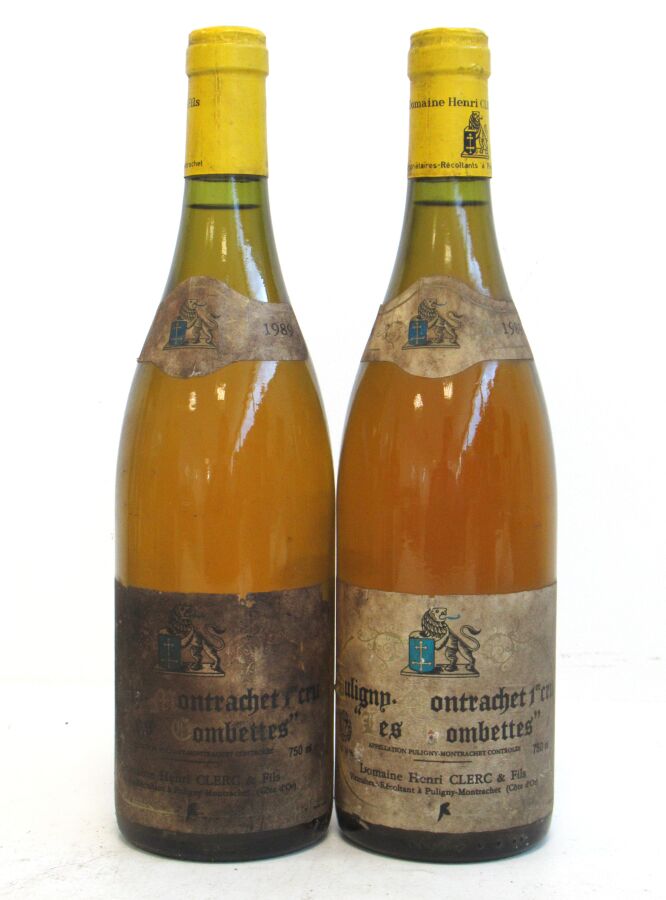 2 Blles PULIGNY MONTRACHET 1er Cru Les Combettes mise Dom. H. Clerc & Fils. 1989 Et.: 1 tachée, 1 très tachée. N : 1 cm.