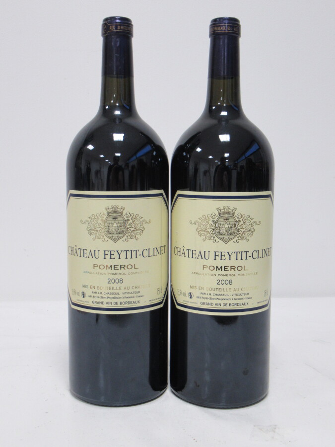 2 Mags - CH. FEYTIT CLINET - Pomerol - 2008 - Et. légèrement tachées (2 minuscules accrocs). N : bas goulot.