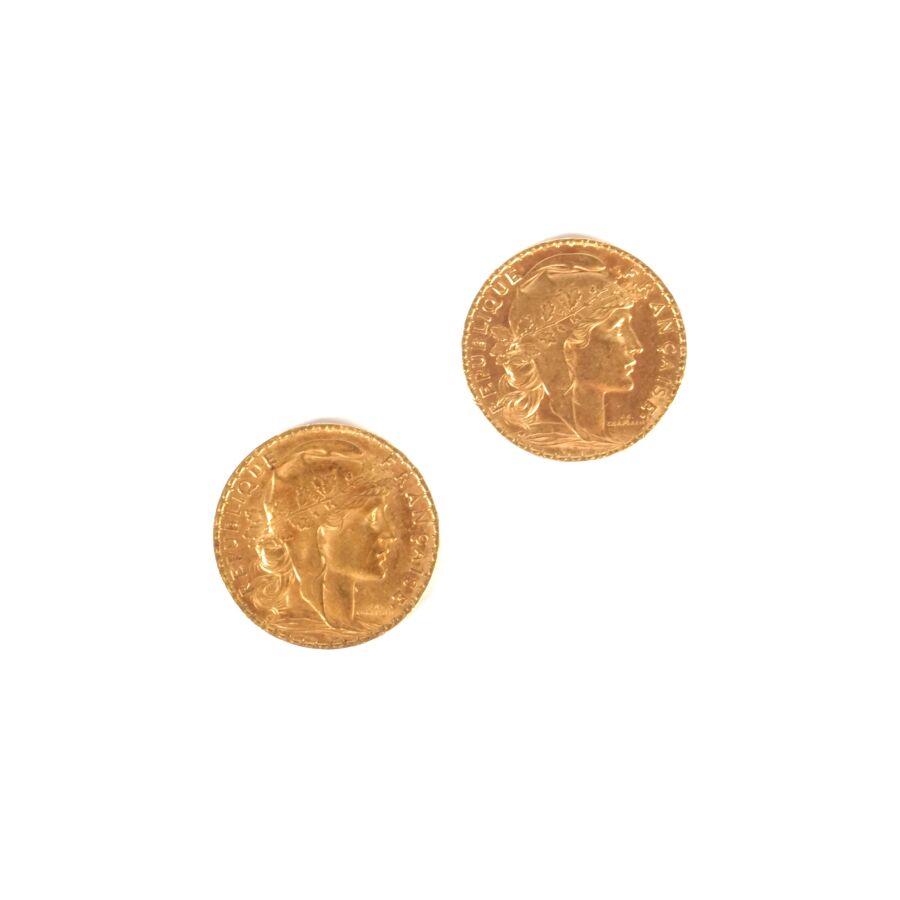 2 x 20 Francs or, Marianne coq, 1 x 1905 et 1 x 1908, Poids brut : 13.1 g environ.