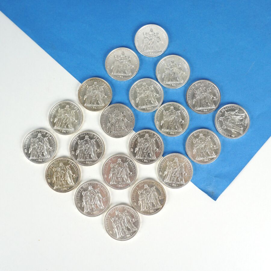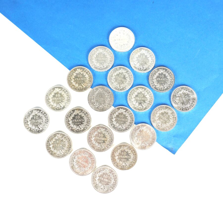 20 x 10 Francs argent, Hercule, 13x 1965, 4 x 1967 et 3 x 1970, Poids brut : 500 g environ.