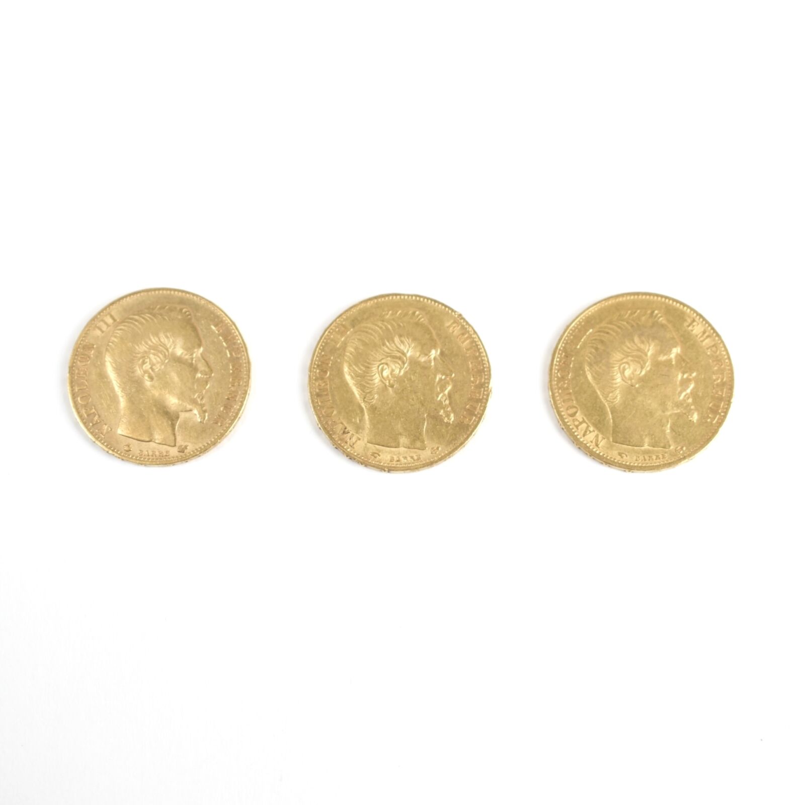 3 x 20 Francs or, Napoléon III "Tête nue", 1860, Poids brut : 20 g environ.