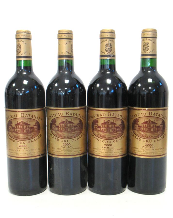 4 Blles CH. BATAILLEY Pauillac GCC 2000 Et. bonnes. N : 3 mi/bas goulot, 1 bas goulot.