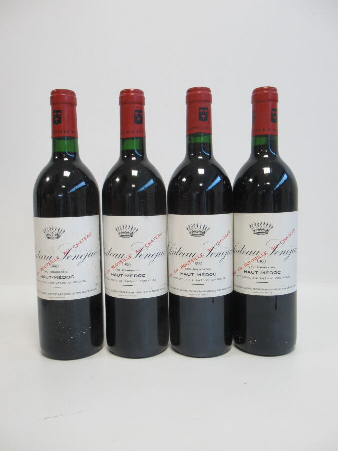 4 Blles CH. SÉNÉJAC Haut Médoc CB 1990 Et. un peu tachées. N : 2 mi goulot, 2 mi/bas goulot.