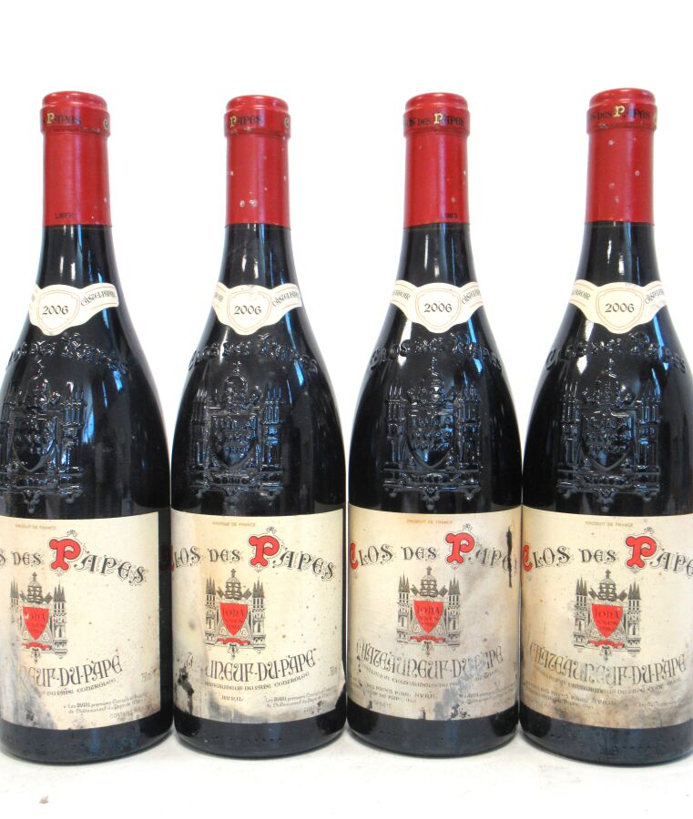 4 Blles CHATEAUNEUF DU PAPE Clos des Papes mise P. Avril 2006 Et. tachées et usées. N : 0,5 cm.